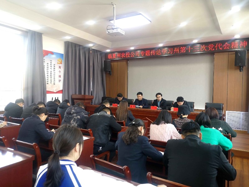11月30日上午,臨夏州農投公司組織召開全體干部職工會議,專題傳達學習州第十三次黨代會精神,安排部署公司學習貫徹落實工作。會議由州第十三次黨代會黨代表、董事長程鵬同志主持,公司班子成員以及全體職工參加。